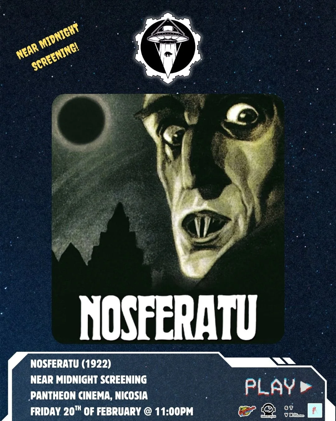 Join us at CyFi Fest for a special “Near Midnight” screening of NOSFERATU (1922), F.W. Murnau’s haunting masterpiece that shaped the DNA of horror cinema for over a century.