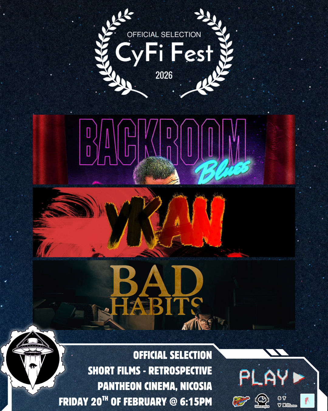CyFi Fest 2026 begins with a journey through the shadows, the strange, and the unforgettable. Before our opening feature, we present a special Out of Competition Retrospective celebrating three Cypriot genre short films that have travelled across the globe, leaving their mark on international festival audiences: